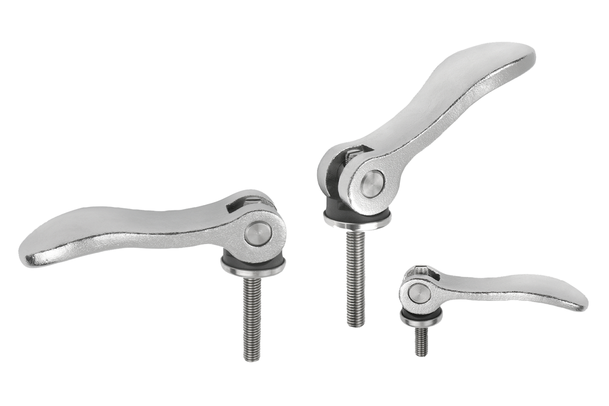 Adjustable cam levers are used if the position of the lever relative to the axis of tension only permits one specific position (interference circle). The exact position of the lever is adjusted using a screwdriver on the fine thread setscrew.