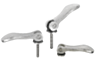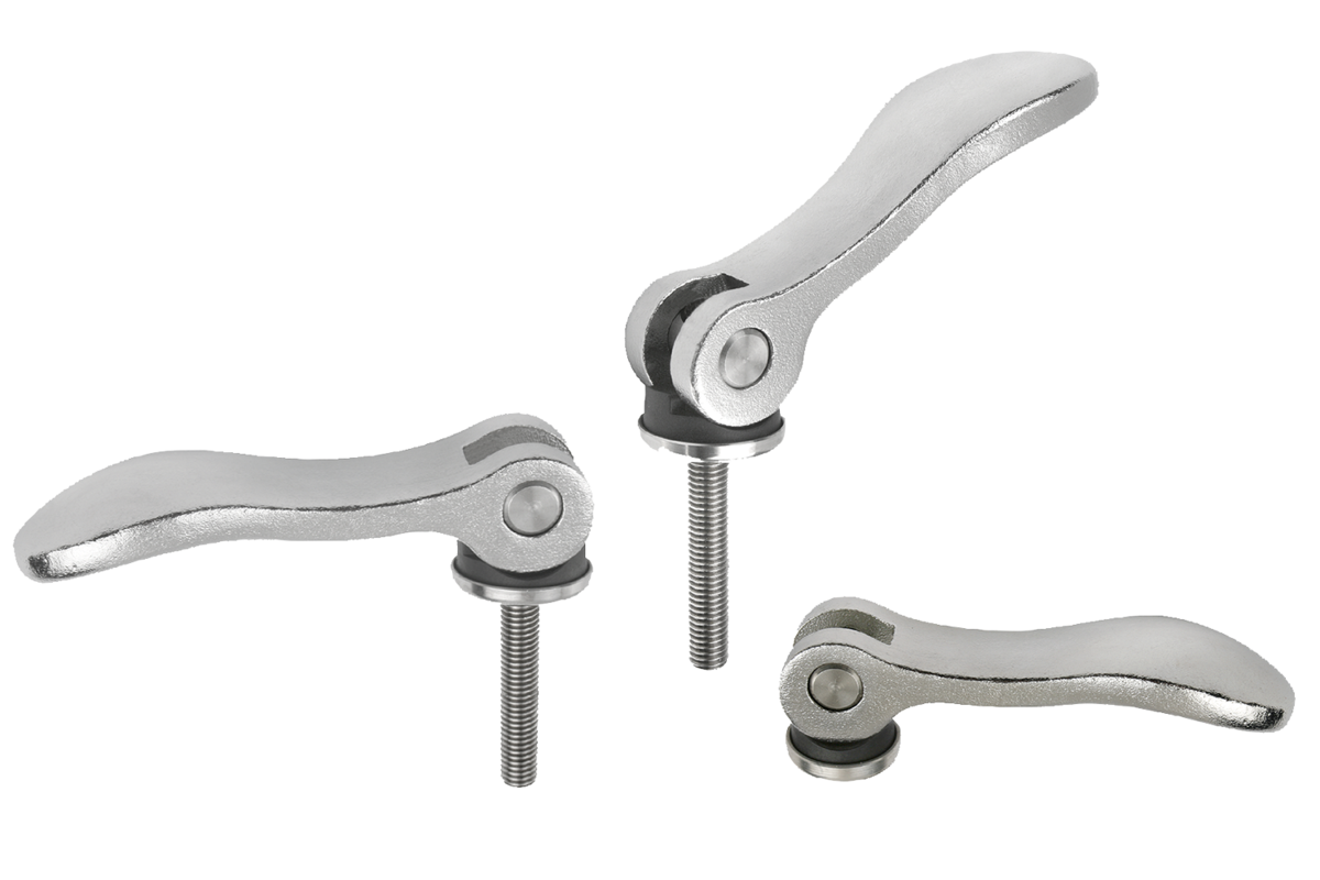 Cam levers, steel, with external thread, plastic-metal thrust washer and steel stud
