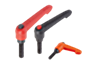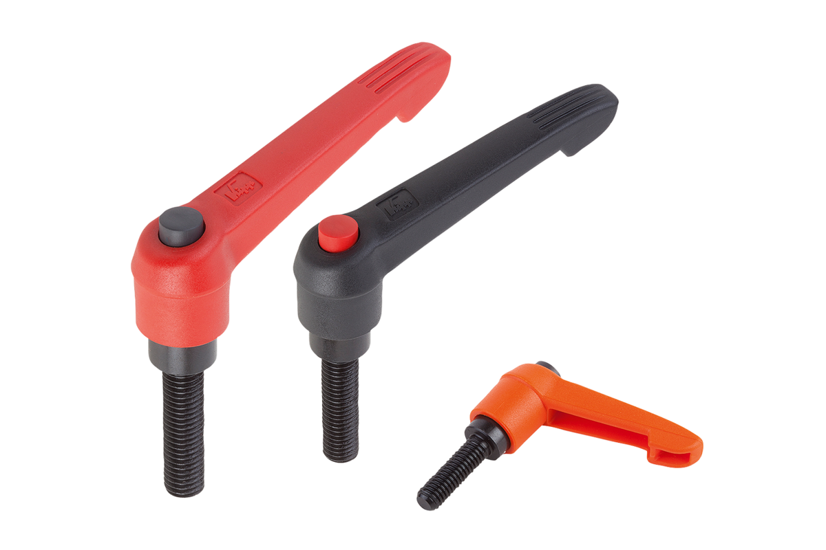 Traffic red clamping lever, black grey push button.
