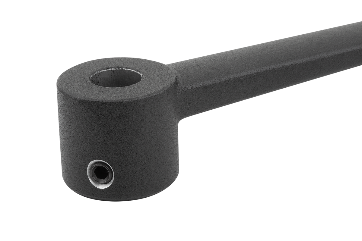 Versions with transverse bore are secured using the ISO 4027 (DIN 914) grub screw.