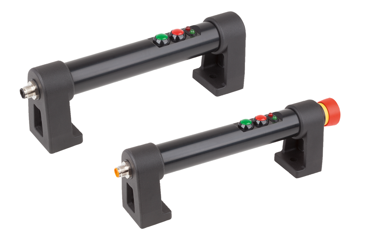 Tubular handles, plastic, with electronic switch function and two push buttons, with emergency stop
