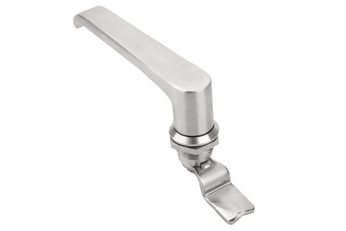 Quarter-turn lock with L-grip. For right or left mounting with 90° closing. The quarter-turn lock can be installed pre-assembled. Supplied with standard stainless-steel nut. Rating IP65.