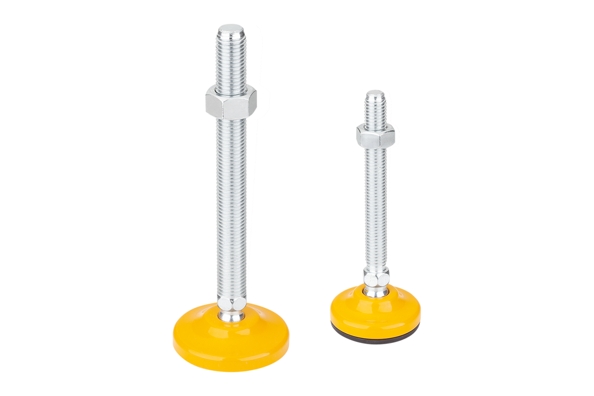 High load rated steel swivel feet with yellow painted plate.