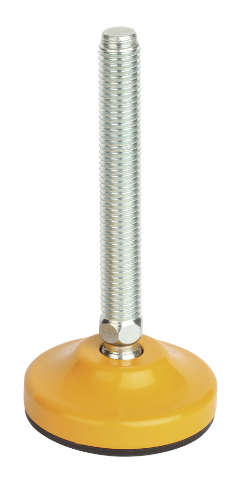 High load rated steel swivel feet with yellow painted plate, optional with an anti-slip plate. The anti-slip plate absorbs vibrations and prevents the swivel foot slipping.