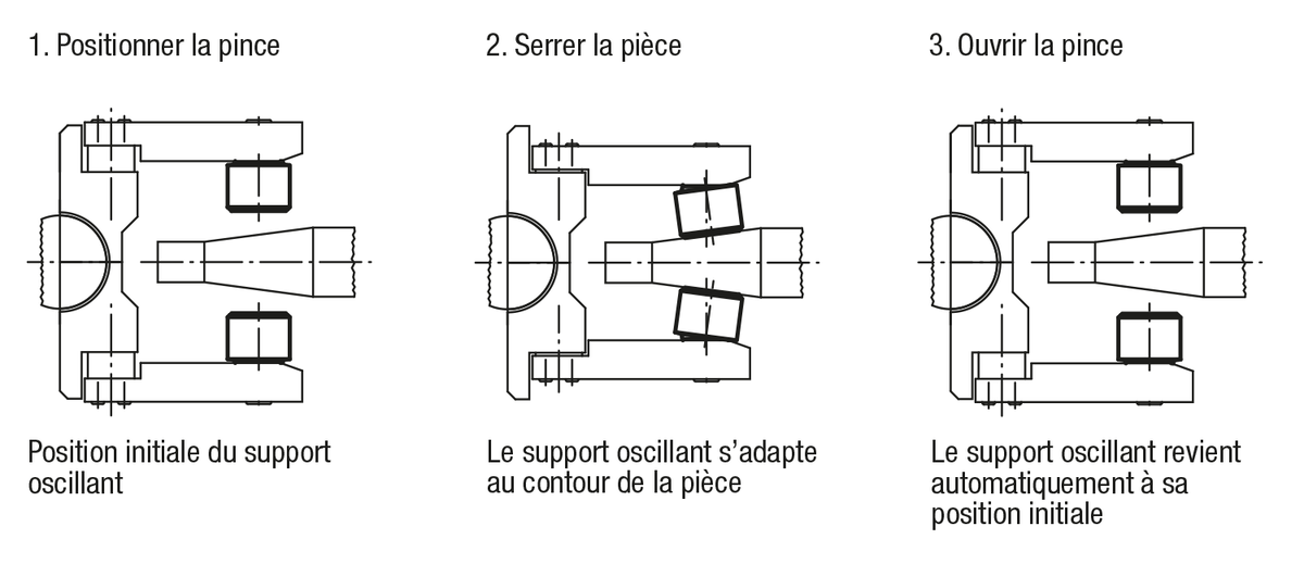 Les supports oscillants servent de butées et d’appuis. Ils peuvent également s’intégrer dans des éléments de serrage ou d’appui standard.