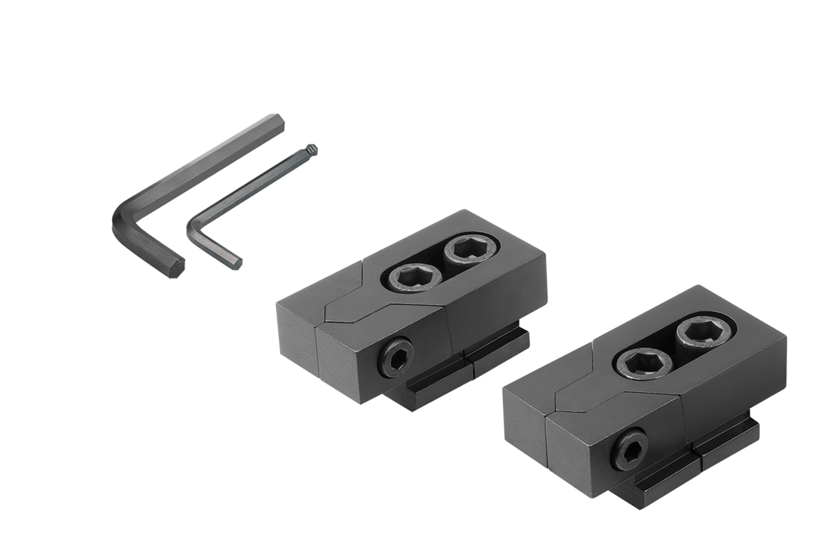 Grâce à leur conception plate, ces mors de serrage profond maniables conviennent à l'usinage des pièces aux dimensions les plus courantes. Ces mors trempés permettent le bridage simultané vers l'avant et vers le bas grâce à leur effet de calage.
