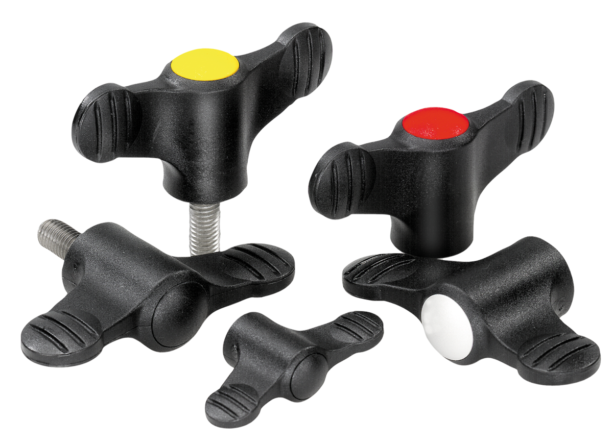 Poignées papillon en plastique avec couvercle, insert fileté en acier ou en inox, avec taraudage