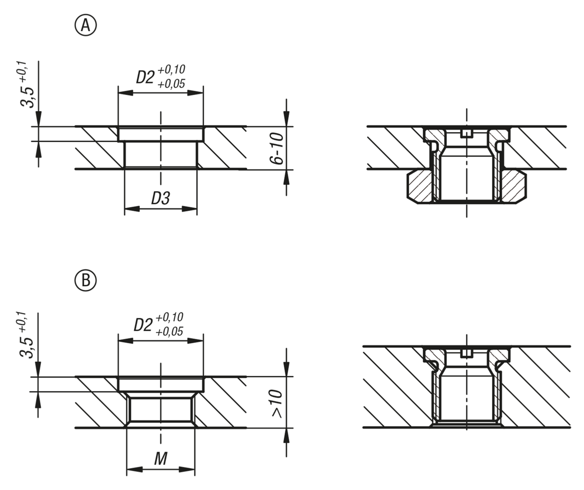 vissée, pour des plaques d'une épaisseur supérieure à 10 mm ou dans un trou borgne.