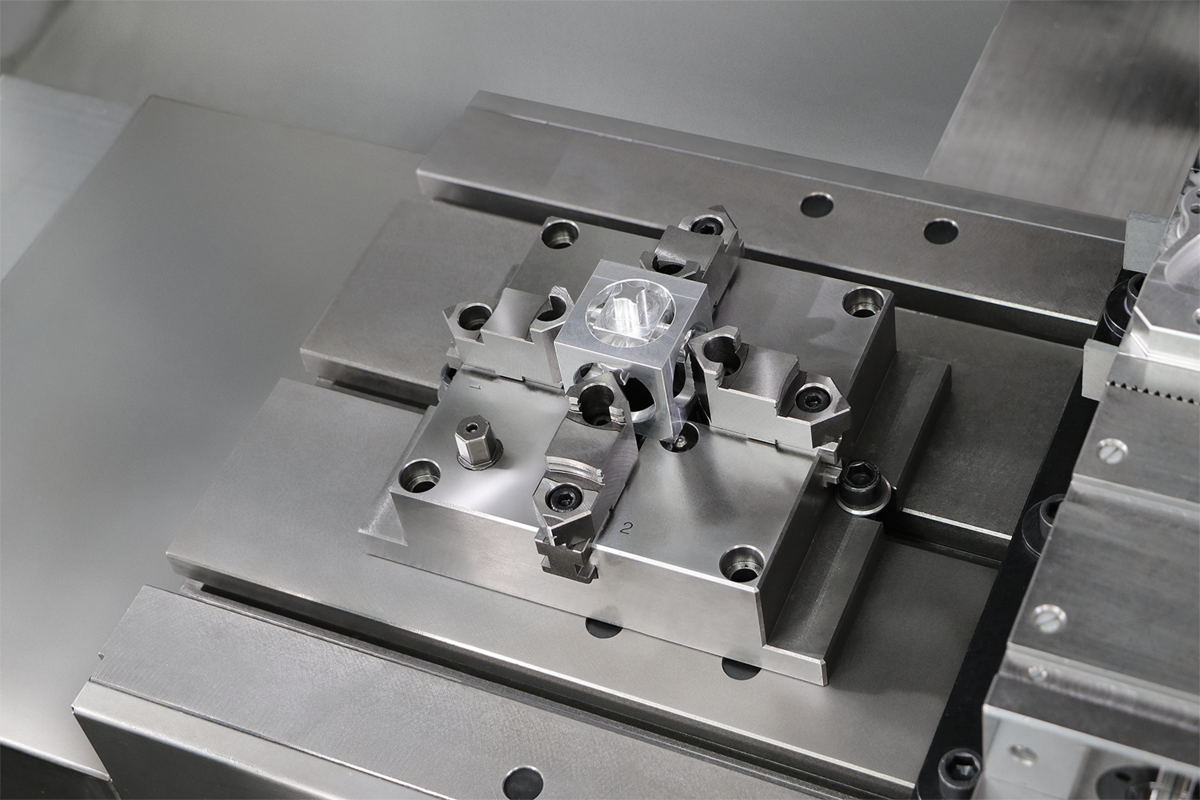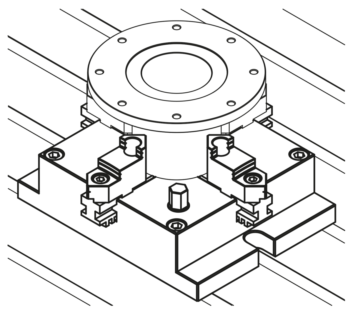 Les mandrins stationnaires à 4 mors sont particulièrement adaptés pour le serrage centré de pièces sur les perceuses et fraiseuses. La disposition flexible des mors de serrage durs et souples permet un serrage facile de l'intérieur comme de l'extérieur de pièces de différentes tailles et formes.