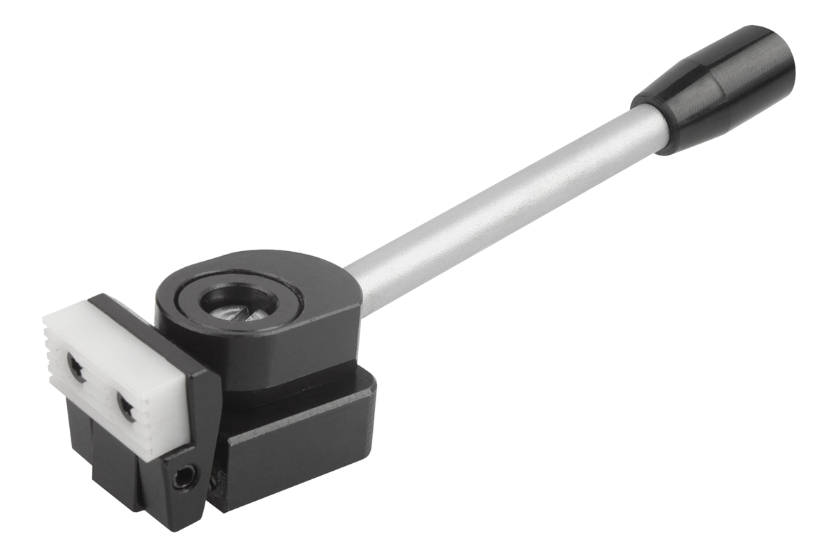 Le crampon plaqueur à came est un élément de serrage rapide, permettant de serrer les pièces à usiner par l’action du levier à came. Le crampon plaqueur à came se positionne et se fixe à l’aide de la douille de centrage (voir schéma).