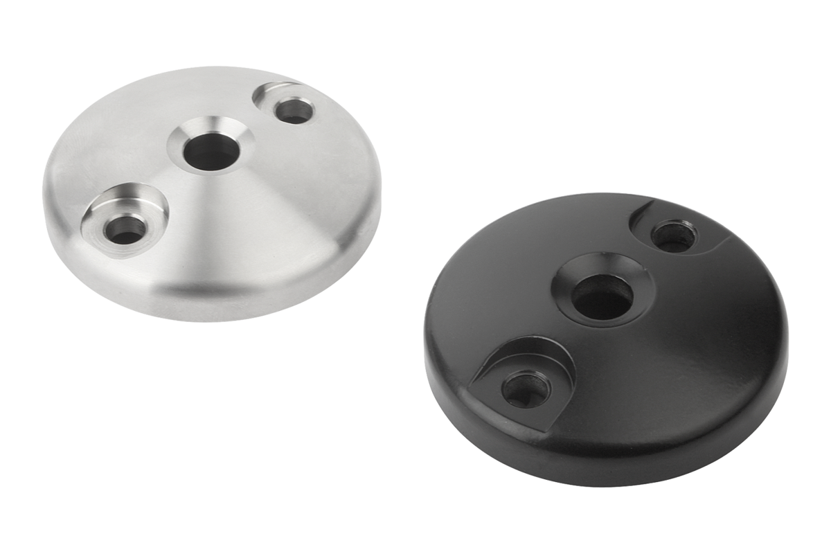 Zinc injecté haute pression : laqué poudre noire. Inox : naturel.