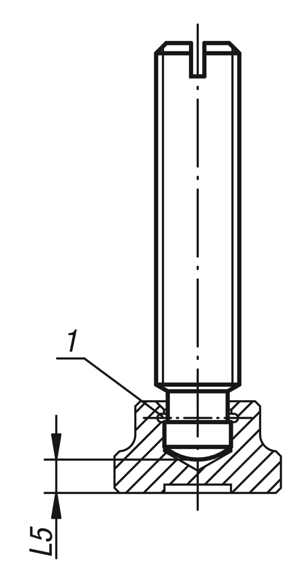 L’extrémité des vis à patin DIN 6332 sert pour le serrage, soit en appui direct, soit avec un patin K0392. Pour relier solidairement la vis à patin à un autre élément, le collage s’avère souvent plus économique que le goupillage.