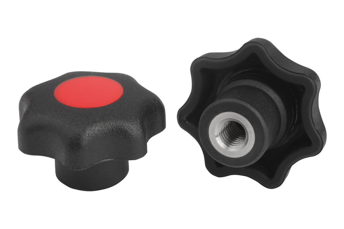 Thermoplastique noir, insert en acier inoxydable 1.4305.
