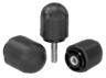 Corps rond en thermoplastique dur, noir. Revêtement en thermoplastique souple, noir. Taraudage en laiton. Filetage en acier de classe de résistance 5.8 zingué.