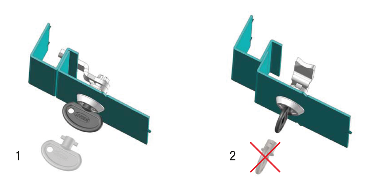 Commander la clé séparément. La serrure peut uniquement être ouverte et fermée avec une clé spécifique. La clé peut uniquement être retirée en position fermée. Lorsque le verrou est ouvert, la clé fait fonction de poignée.