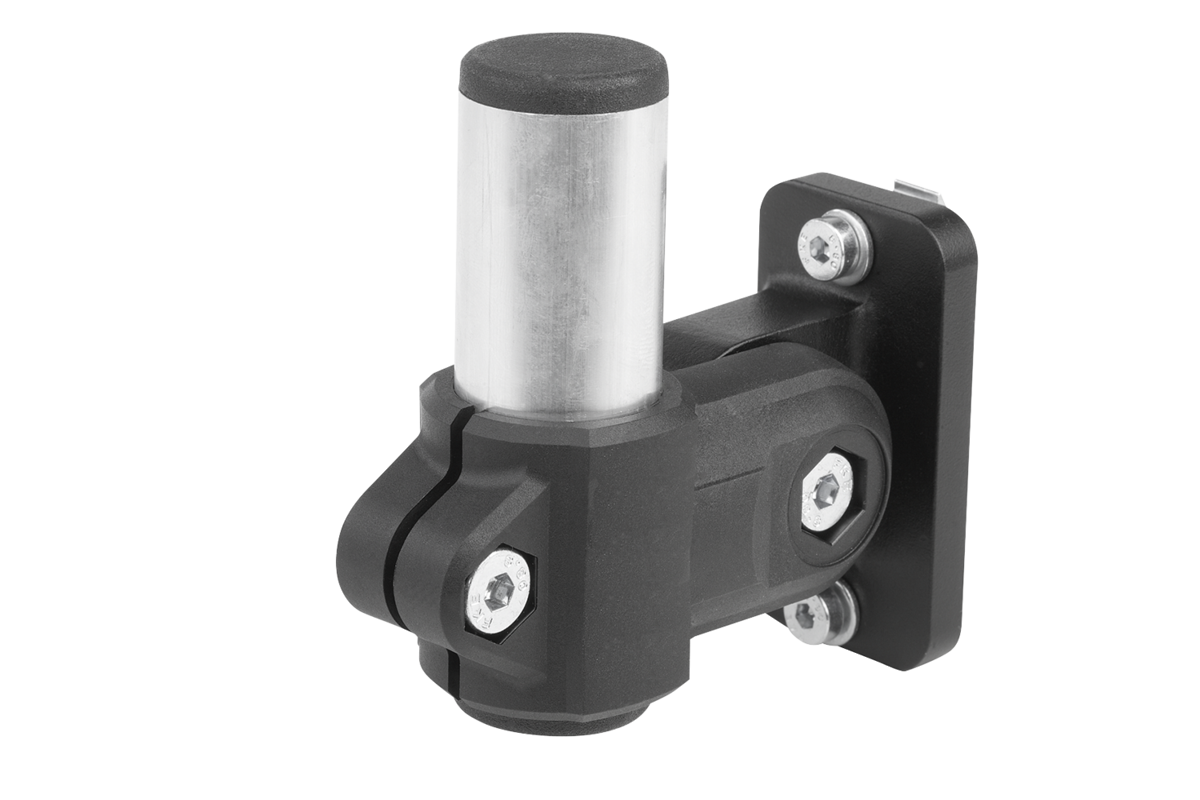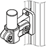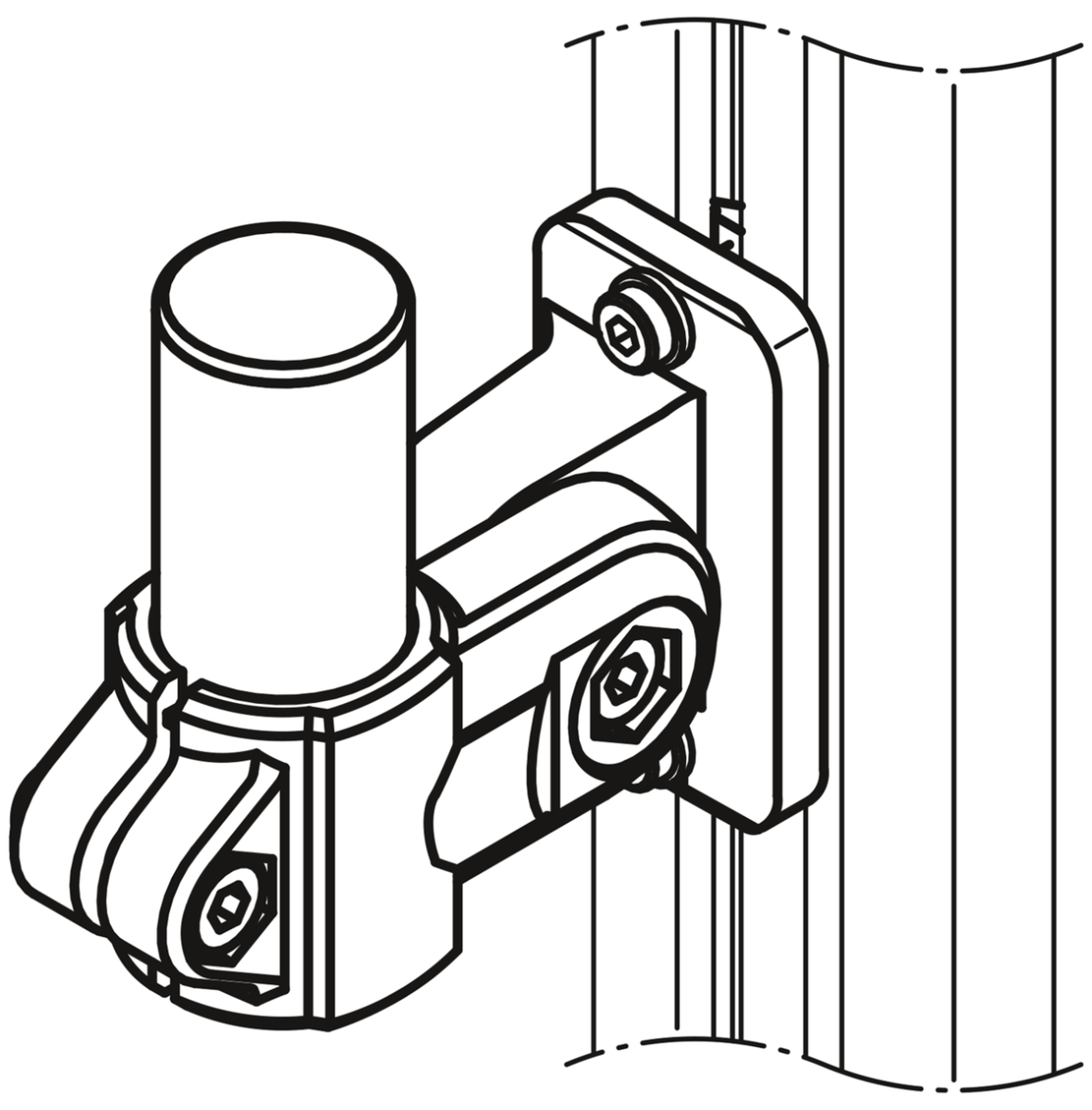 Fixation de positionnement pour support d'écran. Raccordement au profilé d'aluminium et au bâti de la machine à l'aide de lardons.