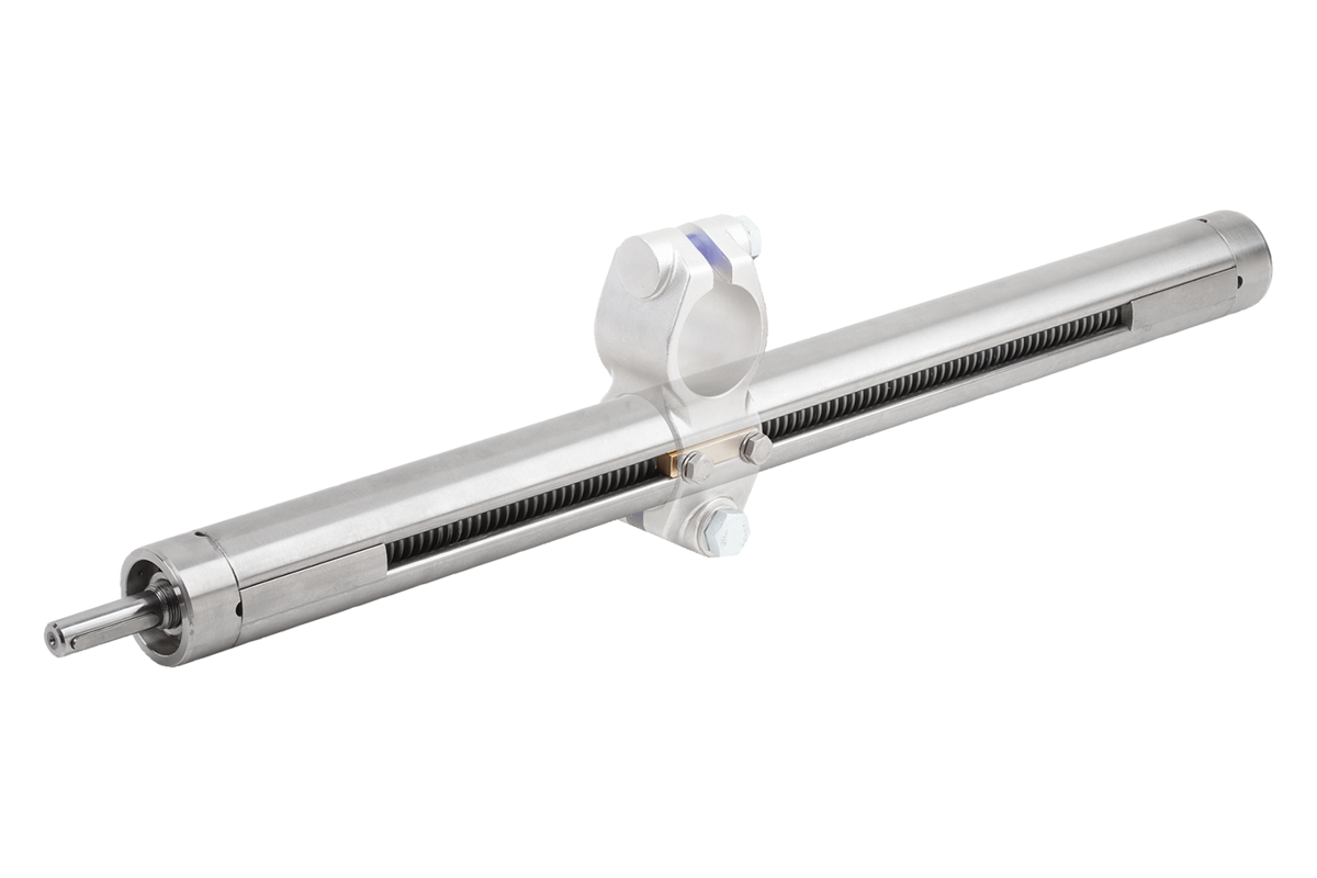 Le mouvement de rotation de la broche est transformé en un mouvement linéaire du coulisseau de guidage.